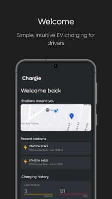 The Chargie mobile app allows you to access our vast network of charging stations, start and end a charge, receive real-time charging updates, and manage your account from anywhere.