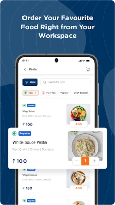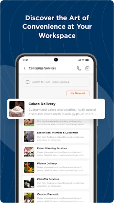 F&B Ordering: Order your favorite meals from on-site restaurants and have them delivered to your workspace.