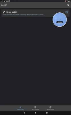 Color Picker - Use your finger to drag around a loupe magnifier and identity the hex codes of colors at the pixel level you can also tap on hex text to copy it into clipboard.