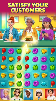 Match-3 puzzles with a tasty twist – match, cook and satisfy customers!