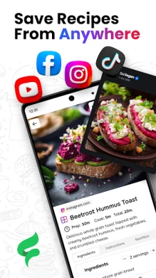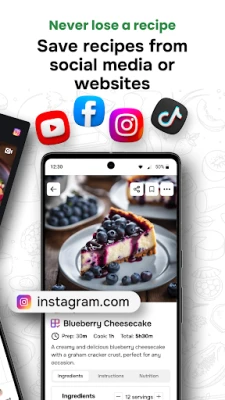 - Save Recipes from Social Media: Import recipes from Instagram, Facebook, TikTok and YouTube directly.