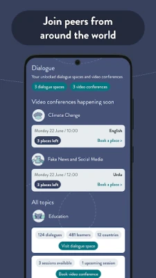As you explore diverse global topics, such as Climate Change, Social Media and Fake News, Hate Speech Online, Identity and Belonging, the Rights of Girls and Women, and many more, you'll be able to share your perspectives and learn from thousands of international peers in live Video Conferences and Dialogue Spaces. Prepare to broaden your horizons and gain fresh insights into the world around you.