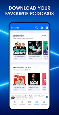 🎵 Stream and download original Global hit podcasts such as The News Agents, The Sports Agents, Tom Dean’s Medal Machine & Reel Talk with Honey and Jonathan Ross. Catch up on other popular podcasts such as Diary of a CEO, The Rest is History & The Rest is Politics.