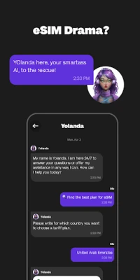 Meet YOlanda: Your smart, sassy AI assistant who helps you choose eSIMs, solve problems, and just be her cool self! 🤖