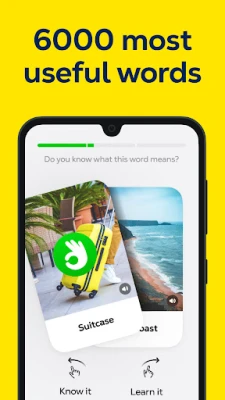You’ll learn 6,000 of the most common English words everyone needs to travel, work, and communicate in a foreign language. Each new word comes with a translation and a memorable illustration.