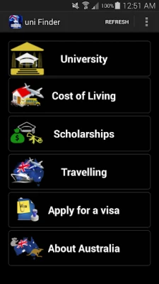 uni Finder is a mobile application that helps domestic and international people who would like to study or/and visit Australia. Application supports information about all Australian universities, cost of living, available scholarships, travelling, applying for a visa and some useful information about tourism in Australia.