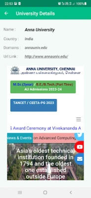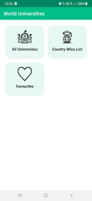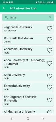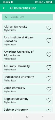 This App list out all the Universities list, and user can search the institution by the name and can see the details about the institution like country, websites. User can see the official websites of the institution in the Universities detail screen. User can add/remove the institutions as favorites, and it will be displayed up in the favorites screen for easy and frequent access. User can also see all the institutions of particular country by selecting specific country from the country wise list screen.